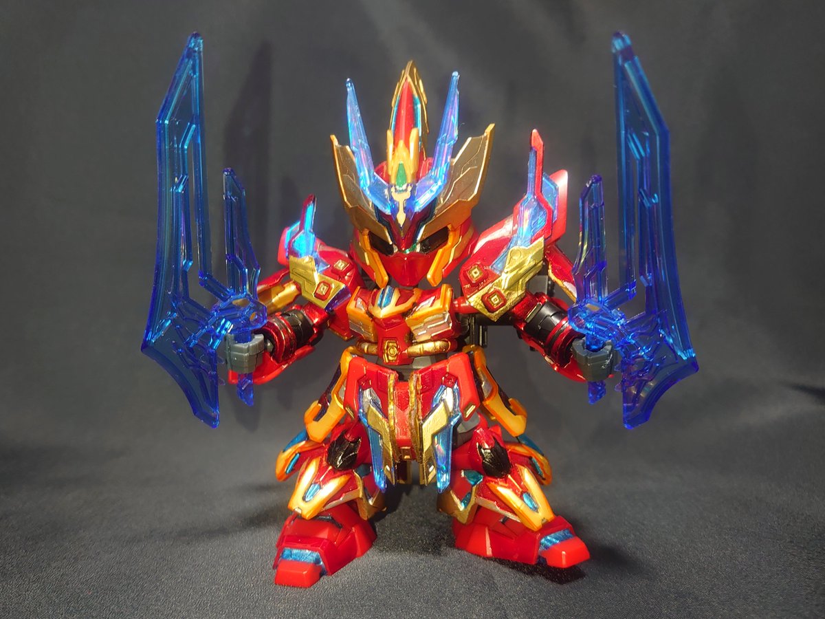 SD 三国創傑伝 張遼サザビーです。 モノアイをクリアパーツにしてクリアブルーのパーツの裏にメタリックテープを貼りました。 #おじさんとお兄さんの模型展オンライン2022 #ガンプラ #ガンプラ好きと繋がりたい #ガンプラの画像貼るとRTされると聞いて