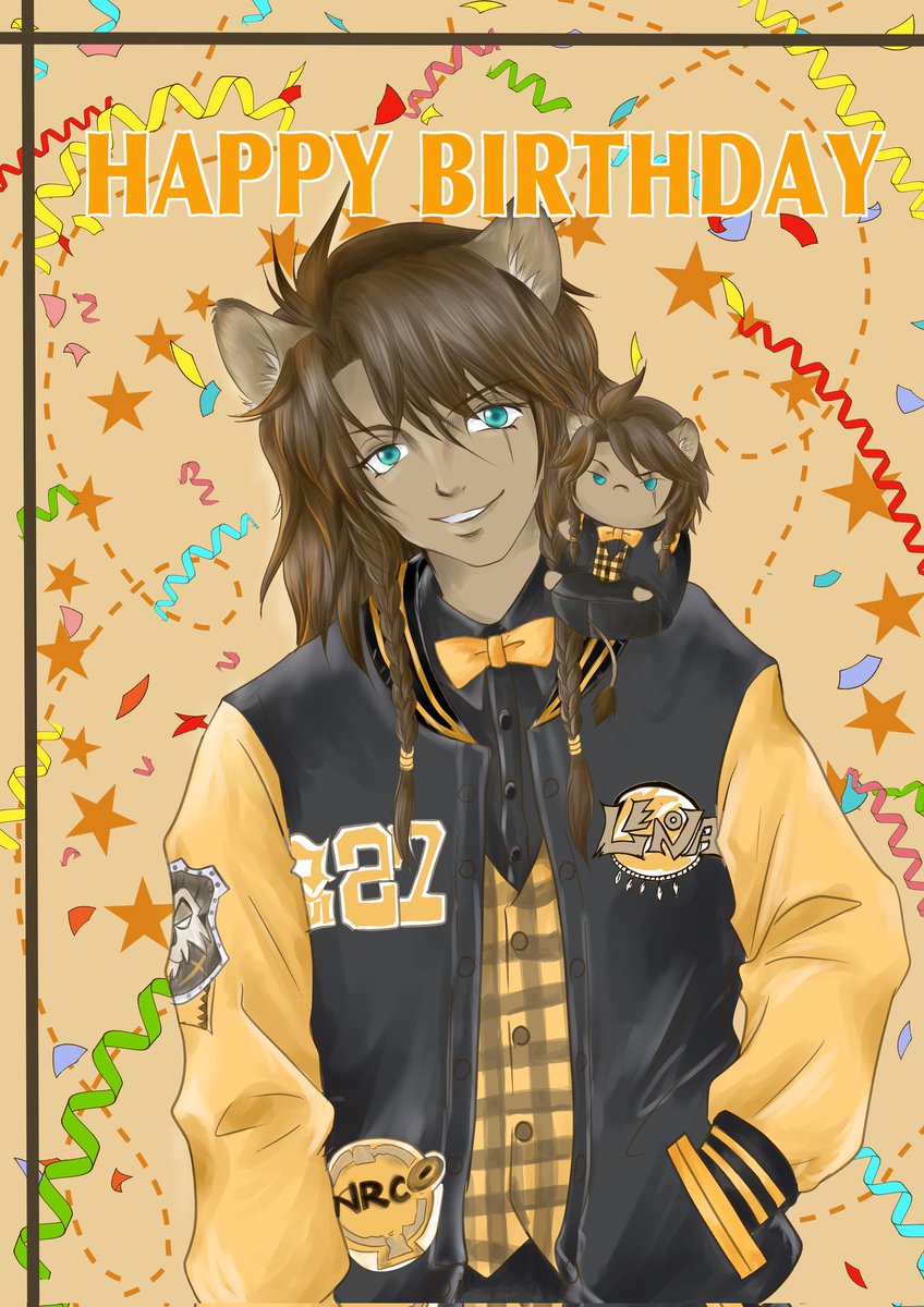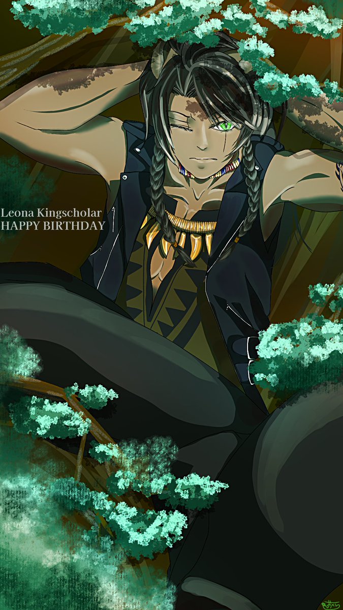 ばーすでーぼーい !!!!! 新旧ゴスマリで運命感じてるよ! 沢山のお友達(?)と甥っ子とこれからもわちゃわちゃしてくれ!! #レオナキングスカラー誕生祭2022 #レオナ・キングスカラー誕生祭 #おじ誕2022 #ツイステファンアート