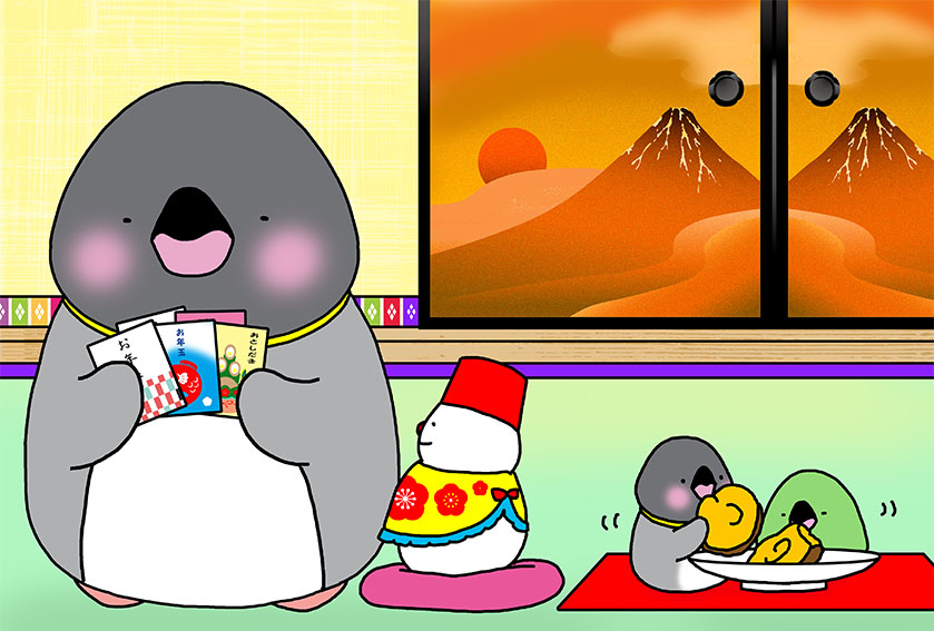 良かった! 小さいお年玉袋も中身は同じだそうな! やはり今年もペンちゃんの思いどおりどす! ・・・でも伊達巻は食べられてしまいました・・ pensuke.sblo.jp/article/189246… #イラスト #お年玉 #イラスト好きと繋がりたい #絵描きさんと繋がりたい #おせち料理 #ペンギン #水族館