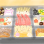 #kagoshima_art #創作の狼煙 #芸術同盟 #イラスト好きな人と繋がりたい #拡散希望 #絵描きさんと繋がりたい #大豆 #2日投稿 #残り物 #ミュシャ #おせち料理 今回はお節料理🍱 残り物のお節料理を食べてる。飽きてきたみたいだがミュシャはパクパク食べてる!残さずに食べるなんて偉いね✨