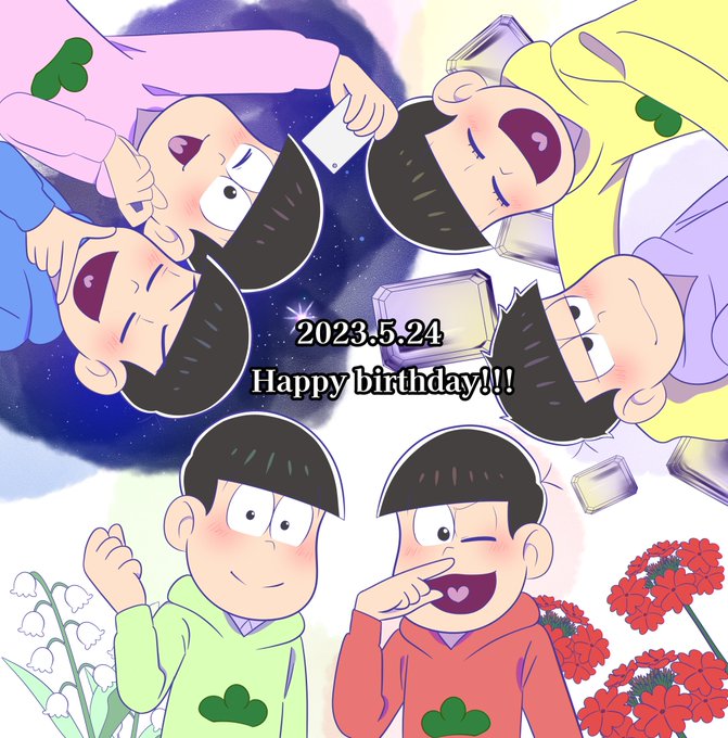 #松野家6つ子生誕祭2023 #5月24日はおそ松さん6つ子の誕生日 #おそ松さん生誕祭 #今まで描いた松の誕生日絵を見せる 今年も間に合わんくてごめんね! 飲んで食べて騒いで笑顔でいておくれ!! Happybirthday!!🥳🎂🎉🎁 1番最初のお祝い→リメイク→さらにリメイクしようとして諦め→諦めてケーキ↓