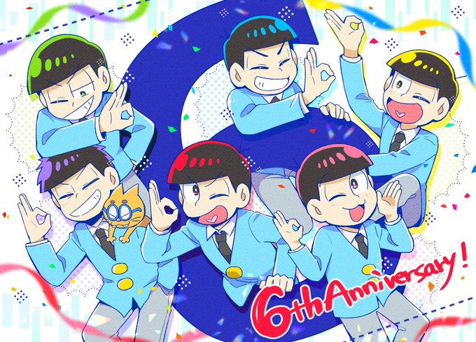 #おそ松6周年だって早いね 6周年、おめでとうございます🎊 1期〜3期、そして映画など、自由奔放なむつごたちにたくさんの笑顔をもらいました✨本当にありがとうございます! これからも応援しています🤍☺️🙏