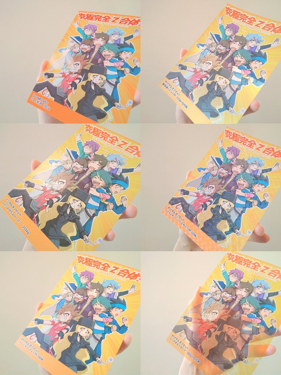#おたクラブオリジナル印刷見本 おたクラブ様の有償印刷見本キャンペーンを利用させていただきました〜✨✨自分の本を作りたいと思いつつも用紙の種類がわからず困っていたので、自分の絵柄で様々な用紙を見ることができてワクワクしてます!ありがとうございます! 2枚目は特にお気に入りの6枚!