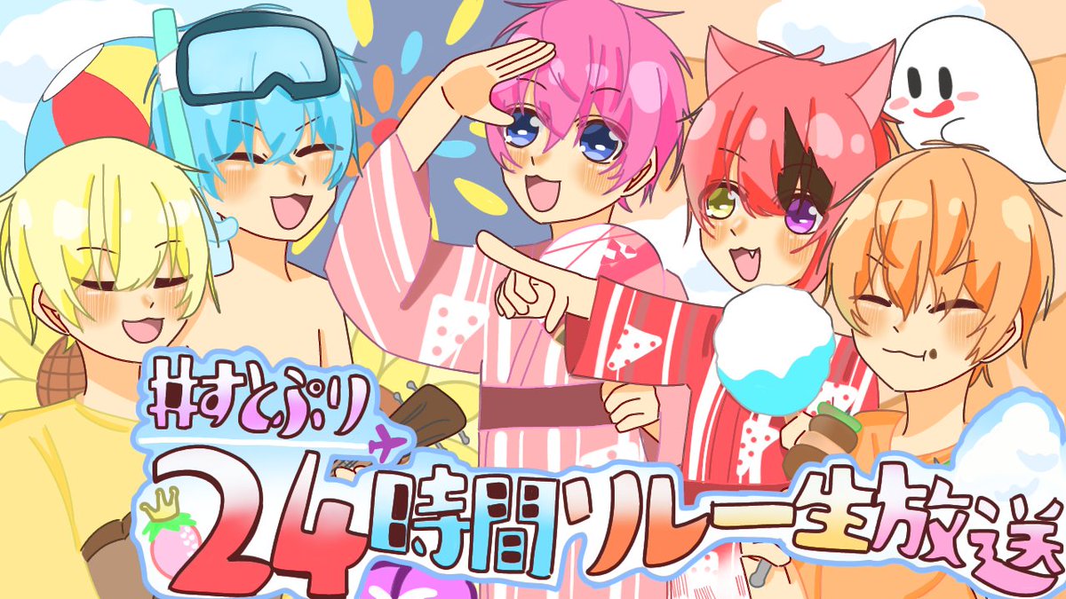 すとぷり24時間リレー生放送お疲れ様でした! 最初の新ビジュから最後の夏グッズのお知らせ、ライブのお知らせ盛りだくさんで楽しかったです(´˘`*) ゆっくり休んでくださいおつぷりです! #すとぷり24時間リレー生放送 #おつぷり #すとぷりギャラリー