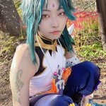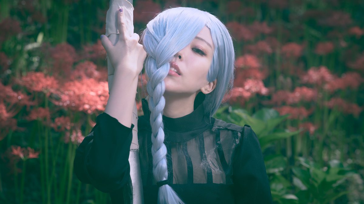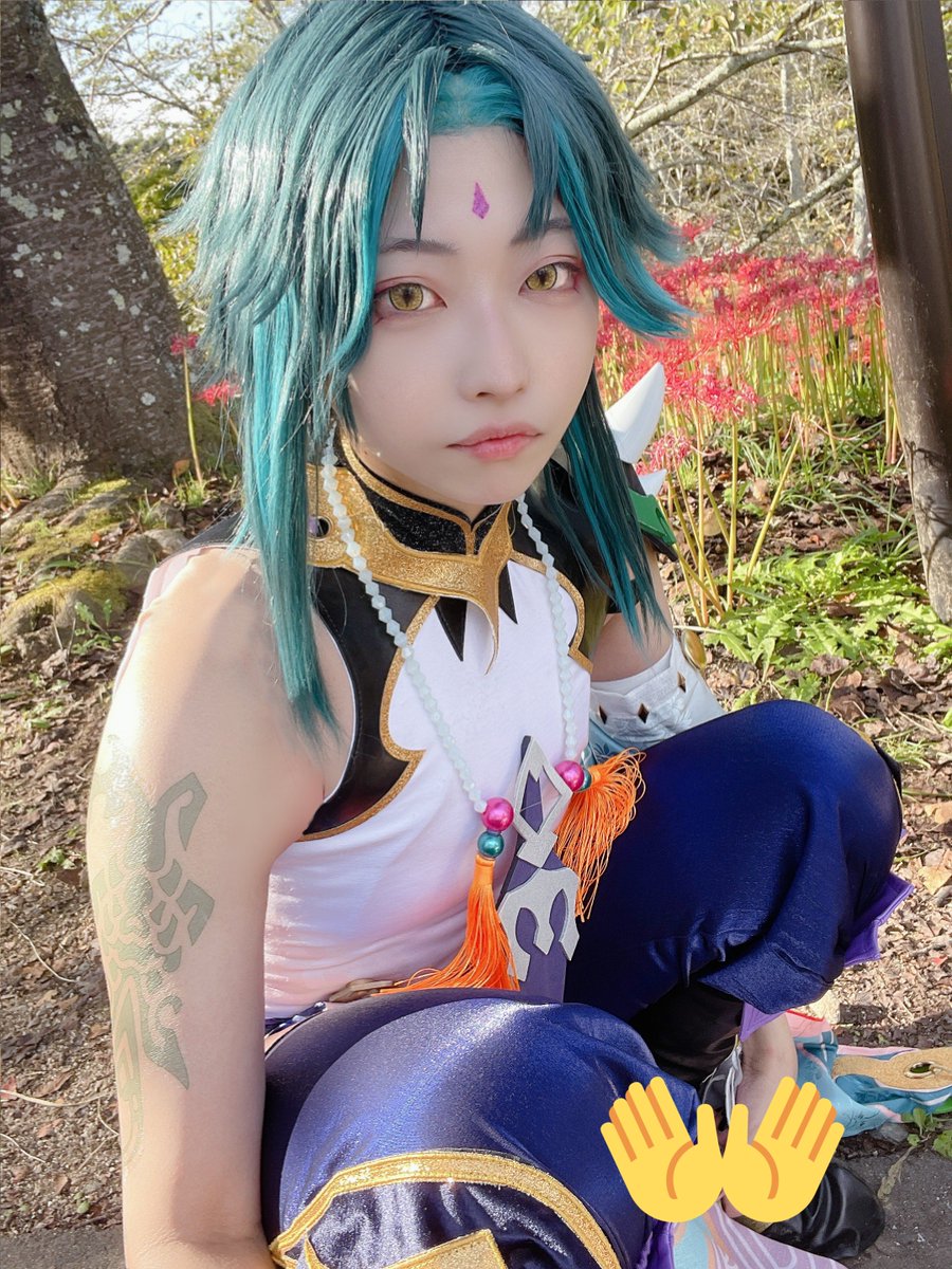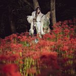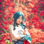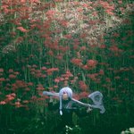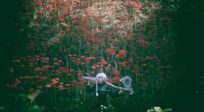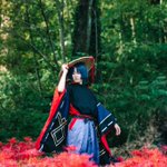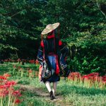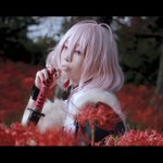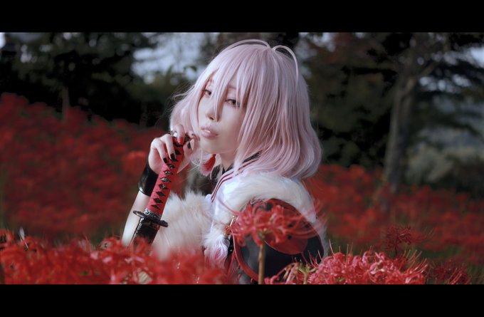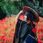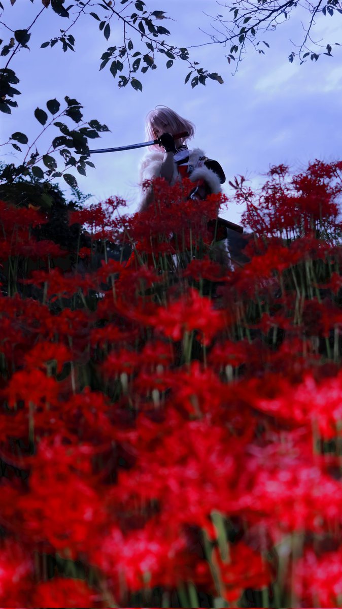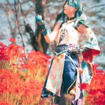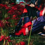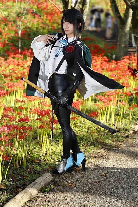 【cosplay 刀剣乱舞 三日月宗近】 4k タップ推奨 ━━━━━━━━━ 曼珠沙華 ━━━━━━━━━ photo:@S_00ayuy 様 #おでかけにくきゅう #船岡城址公園 ※被写体は通路に立ち望遠レンズにより撮影しております※