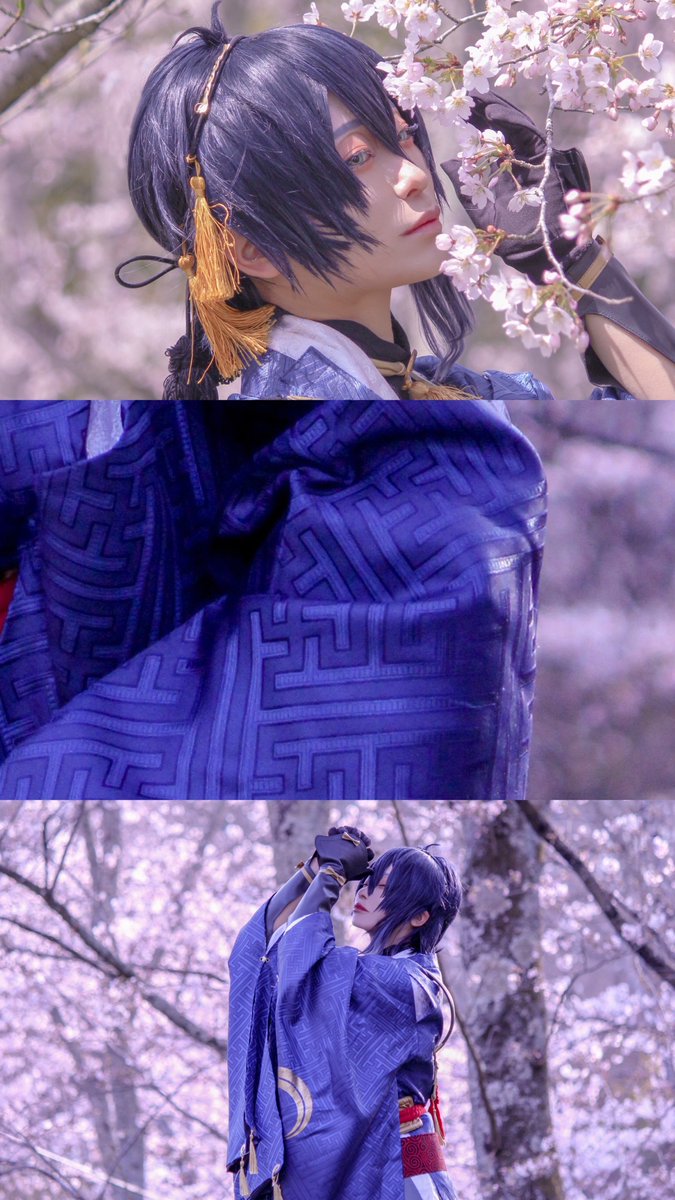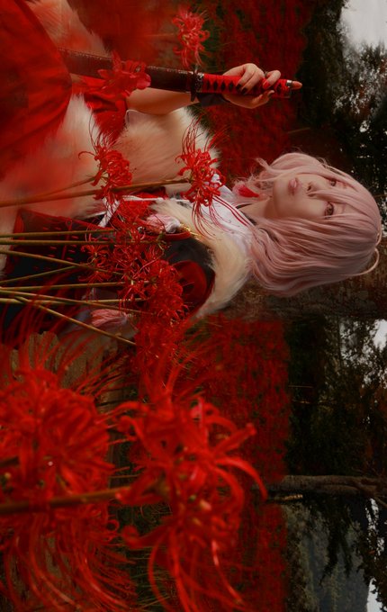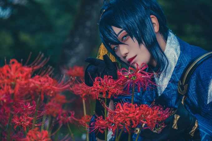 【cosplay 刀剣乱舞 三日月宗近】 4k タップ推奨 ━━━━━━━━━━━ 朱 ━━━━━━━━━━━ photo:@S_00ayuy 様 #おでかけにくきゅう ※花には触れずに撮影しております。
