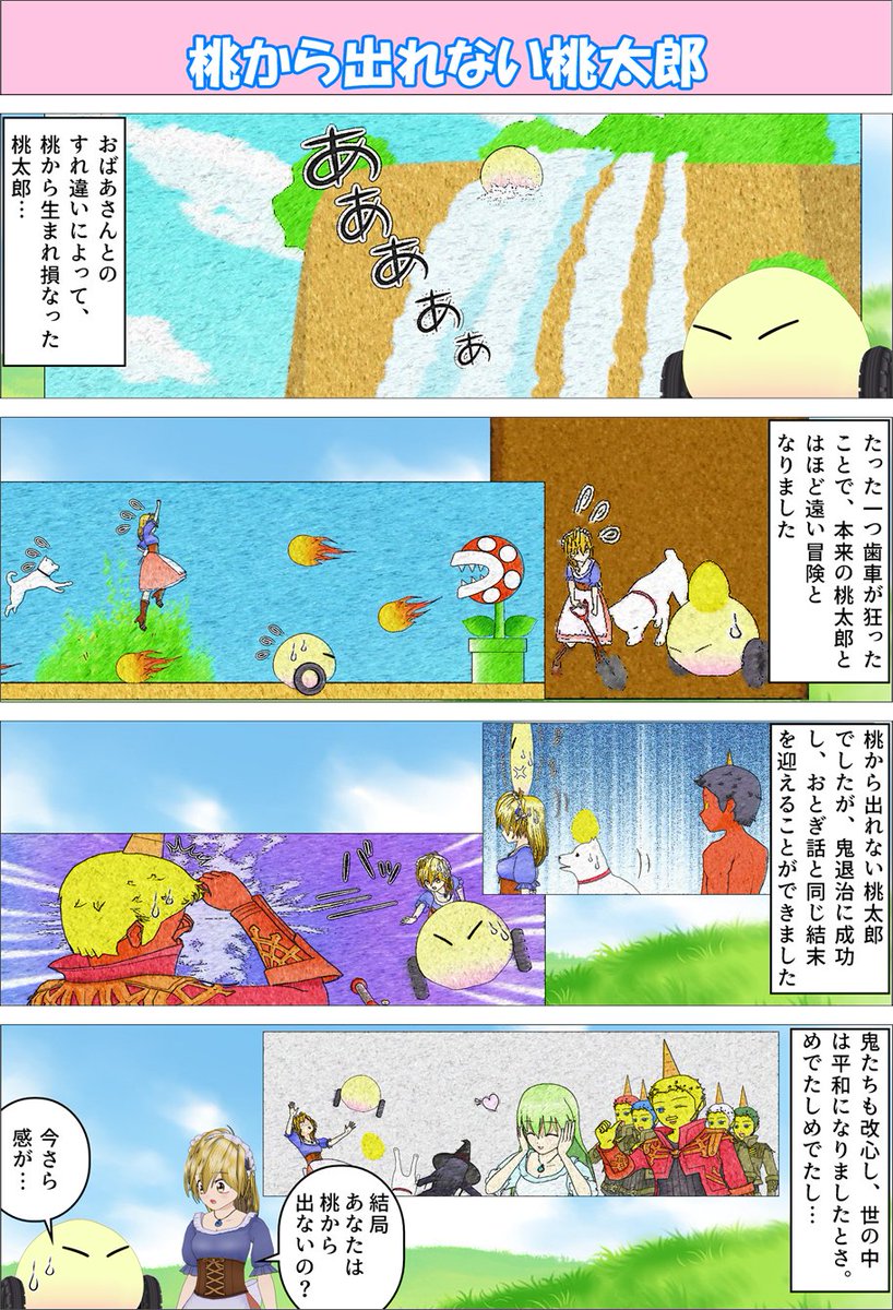 「桃から出れない桃太郎」96話。 終わりです。桃から出れずに滝に流されるというネタからよくここまで…。読んでくださった方ありがとうございます! #comipo #漫画 #4コマ漫画 #おとぎ話 #桃太郎 #シンデレラ #犬 #漫画が読めるハッシュタグ #漫画好きと繋がりたい #秋の創作クラスタフォロー祭り