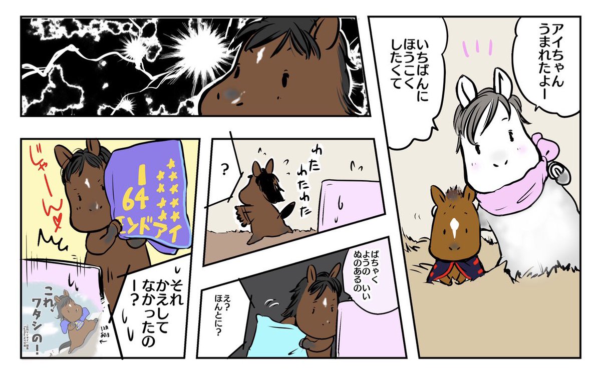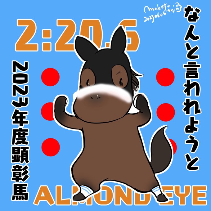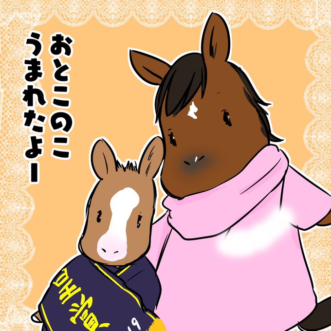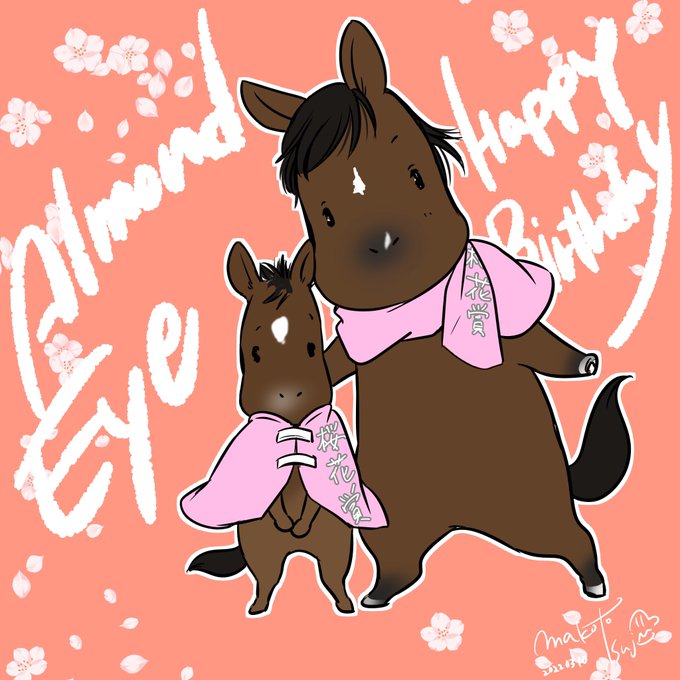 アイちゃんのお仔出産の動画アップを先程教えて頂きまして、涙しながら描きました。 アイちゃんには感謝しかない! お誕生日おめでとう! #アーモンドアイ #アーモンドアイ誕生祭 #おとしごろなたたかい きっとこのレイ風の馬着とかはアエちゃんが作ってくれた✨