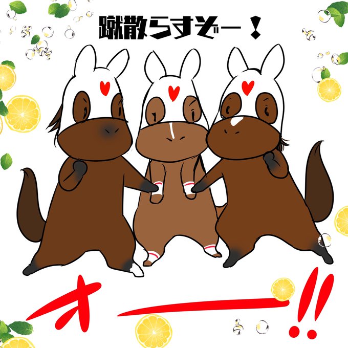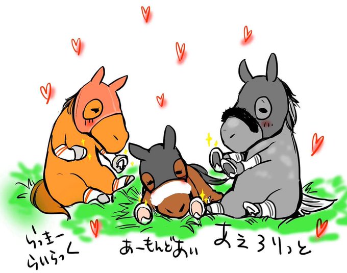 3年前にアップしたもの放流ー #ラッキーライラック #アーモンドアイ #アエロリット #おとしごろなたたかい な子達の女子会です(笑) 蹄を(保護のための)ネイルしてもらってウフフな女の子たち これから #マイルチャンピオンシップ 見るようです。 #競馬 #umajo