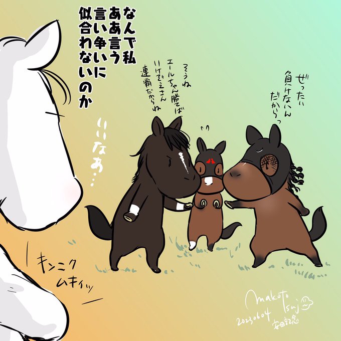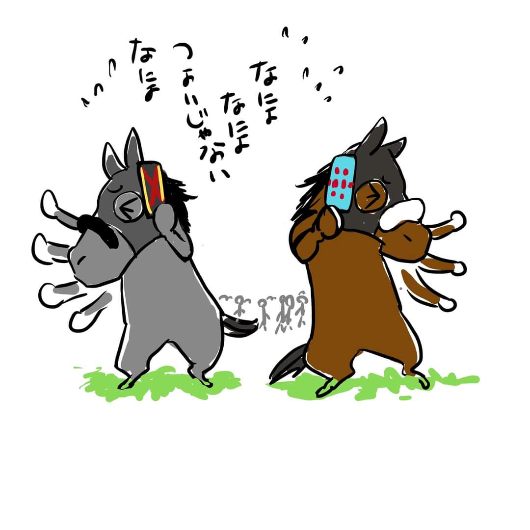 仕事の合間に落書き 録っててもらったみんなのkeiba見たあとざっくり描いた。 ラブパイローの後ろっぱねが当たっちゃったとのことで 大変だったねぇ #オークス #おとしごろなたたかい