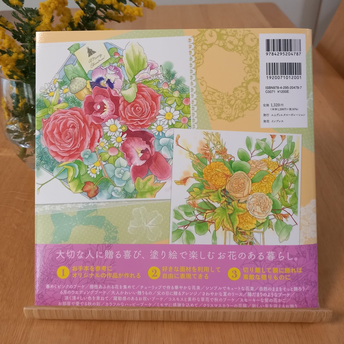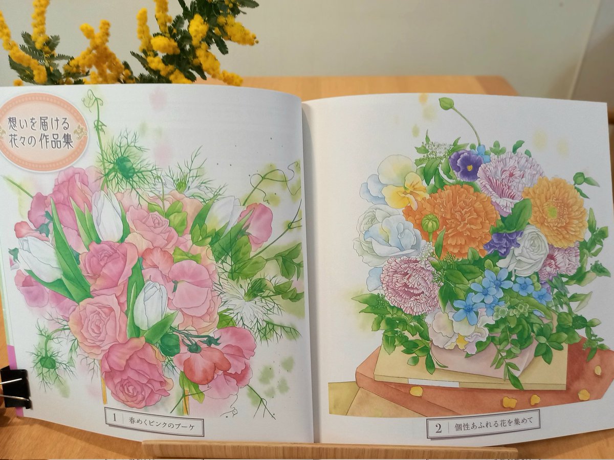 「おとなのスケッチ塗り絵 彩りのフラワーブーケ~想いを届ける幸せの花ギフト〜」より、①春めくピンクのブーケの途中経過です🥰❤️お花の塗り絵は1つお花を塗り終わる度に花が咲いていくような感じがとても好きです🥰❤️ #トウドヤヨイ #おとなのスケッチ塗り絵 #大人の塗り絵