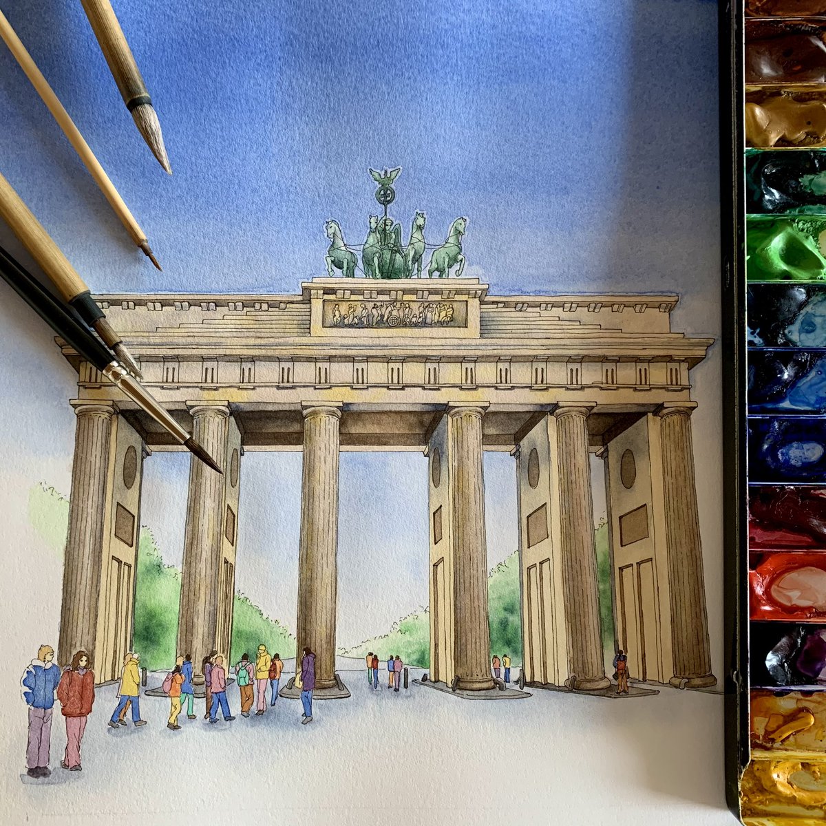よろしかったらおうちで塗り絵でも😊. amazon.co.jp/exec/obidos/AS… 11ページ目の塗り見本です. ベルリンのブランデンブルク門です. #ドイツ #塗り絵 #ぬりえ #大人の塗り絵 #おとなの塗り絵 #イラスト #アナログ #絵 #水彩 #水彩画 #水彩絵を流して水彩民を増やそう #illustration #watercolor