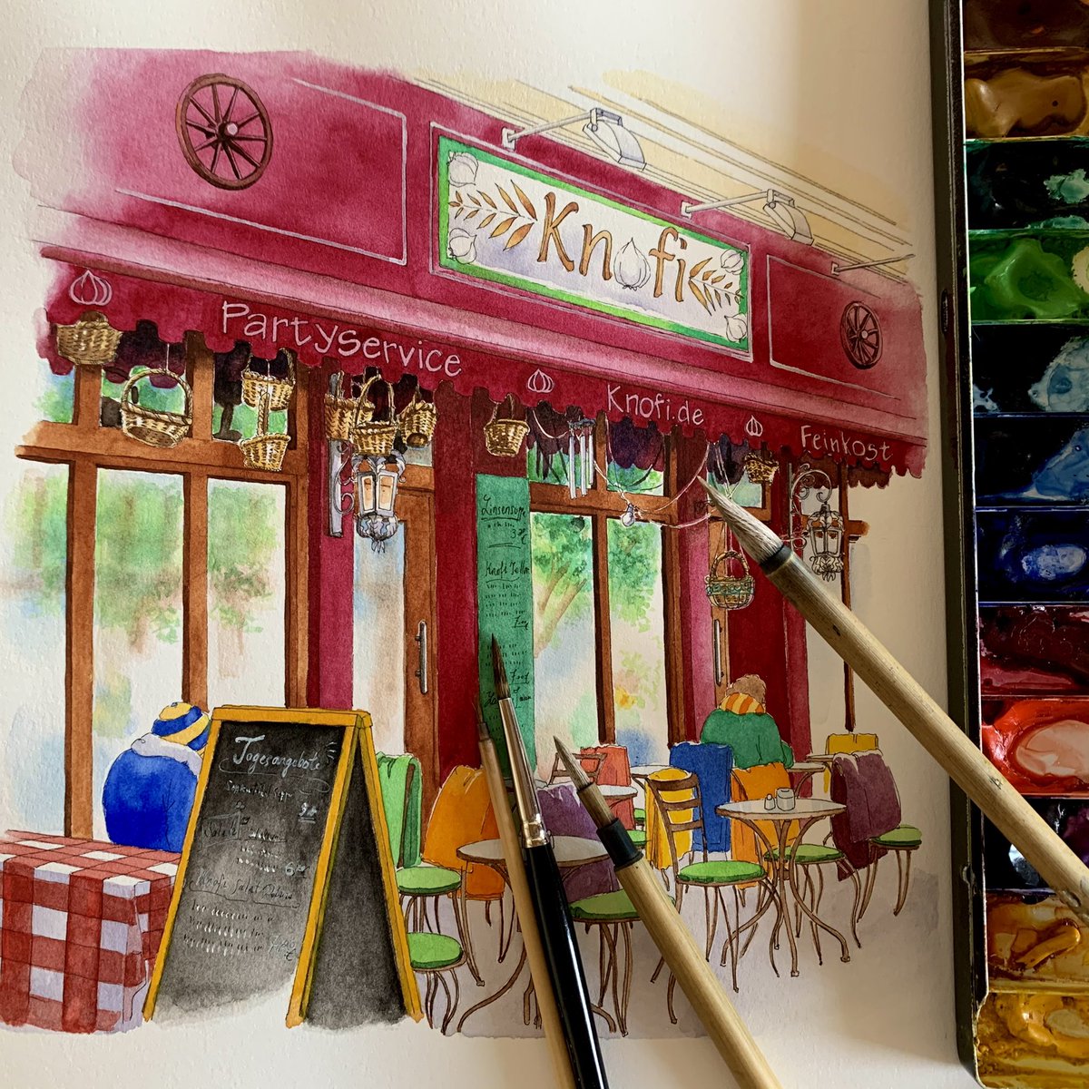 よろしかったらおうちで塗り絵でも😊 amazon.co.jp/exec/obidos/AS… 17ページ目の塗り見本です. ベルリンのレストラン外観と外テーブルです. #ドイツ #塗り絵 #ぬりえ #大人の塗り絵 #おとなの塗り絵 #イラスト #アナログ #絵 #水彩 #水彩画 #水彩絵を流して水彩民を増やそう #illustration #watercolor