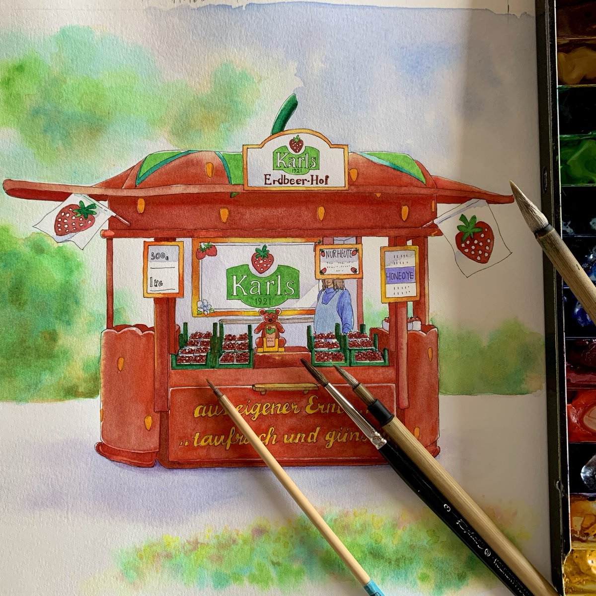 よろしかったらおうちで塗り絵でも😊. amazon.co.jp/exec/obidos/AS… 21ページ目の塗り見本です ベルリンのいちご屋台です #ドイツ #塗り絵 #ぬりえ #大人の塗り絵 #おとなの塗り絵 #イラスト #アナログ #絵 #水彩 #水彩画 #水彩絵を流して水彩民を増やそう #illustration #watercolor