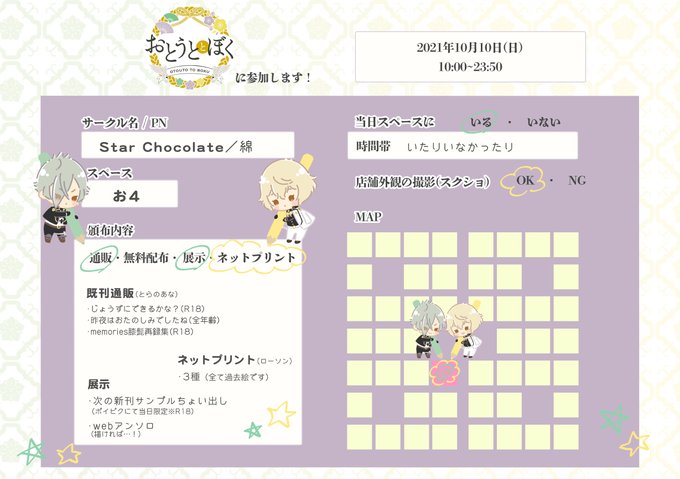 おとぼく参加します🎉🐍🦁🎉 【お4】Star Chocolate 展示の次の新刊サンプルちょい出しは夕方以降を予定してます WEBアンソロは間に合えば……! よろしくおねがいします🥳 #おとぼく_1010