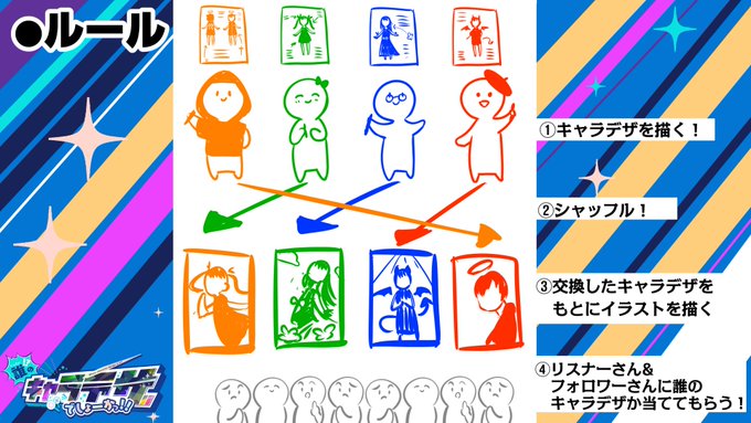 キャラデザをシャッフルして清書する 誰のキャラデザだゲームに参加させていただきました~!!!🥳🎉✨✨ 11日私のお絵描きチャンネルで答え合わせの メイキング動画を公開するので 是非見に来てください🍊😎 #おとまろ版誰のキャラデザだゲーム
