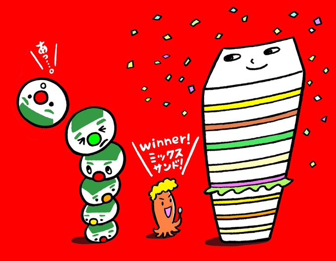 おにぎりあるある🍙 (これはおにぎり不利じゃな〜い?) 「背比べ大会2021」 #漫画が読めるハッシュタグ #1コマ漫画 #オリキャラ #おにぎりあるある #ミックスサンド #背比べ #みんなで楽しむTwitter展覧会 #アトリエの系譜