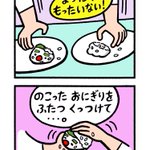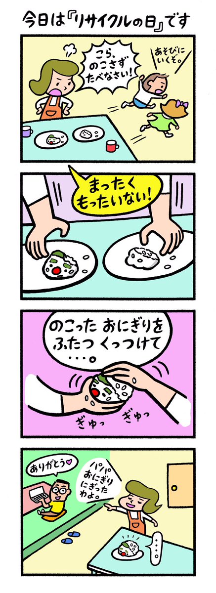 おにぎりあるある🍙 (食べものは大切に) #漫画が読めるハッシュタグ #4コマ漫画 #絵 #オリキャラ #おにぎりあるある #リサイクルの日 #みんなで楽しむTwitter展覧会 #アトリエの系譜