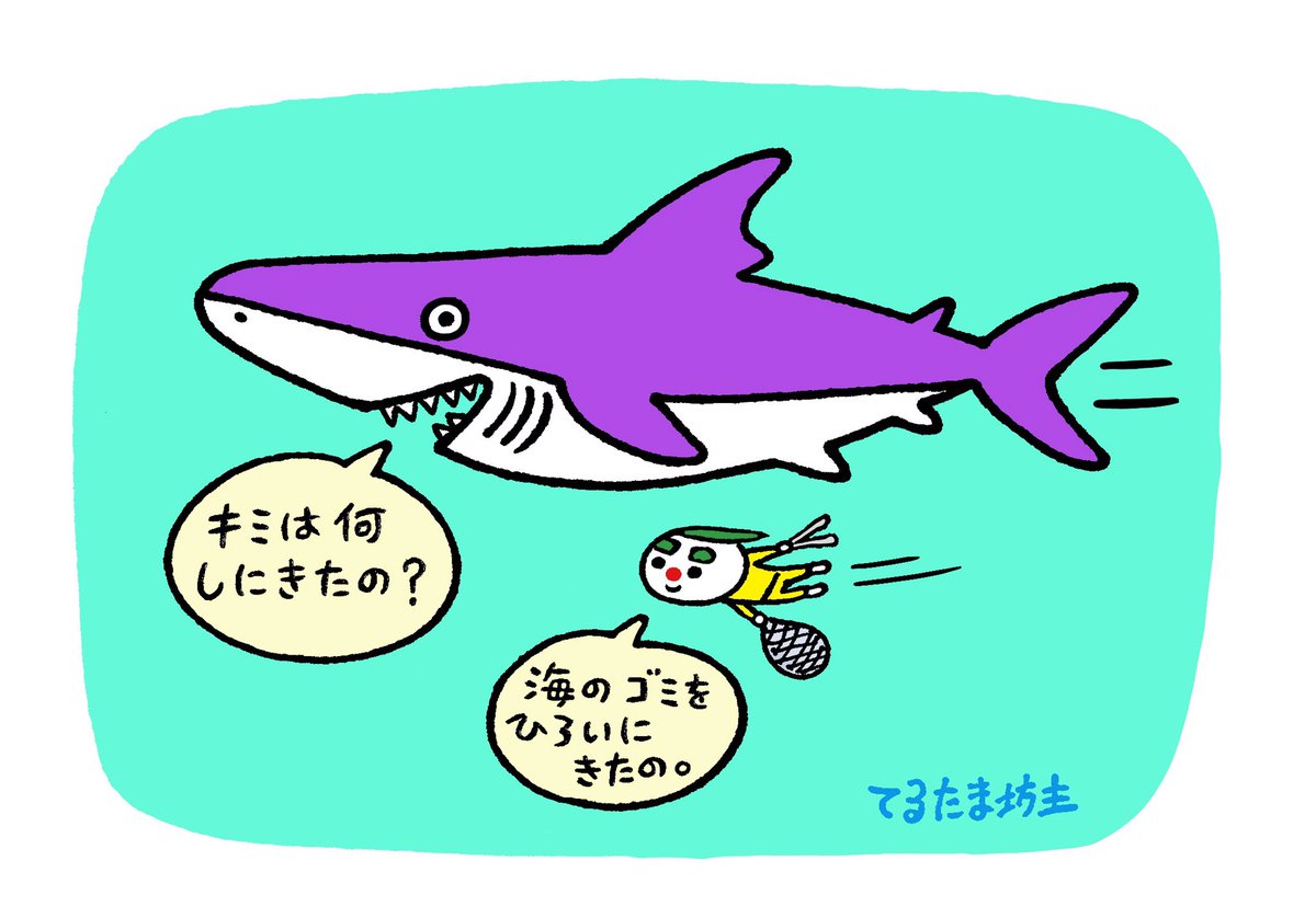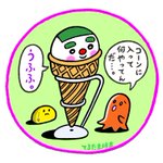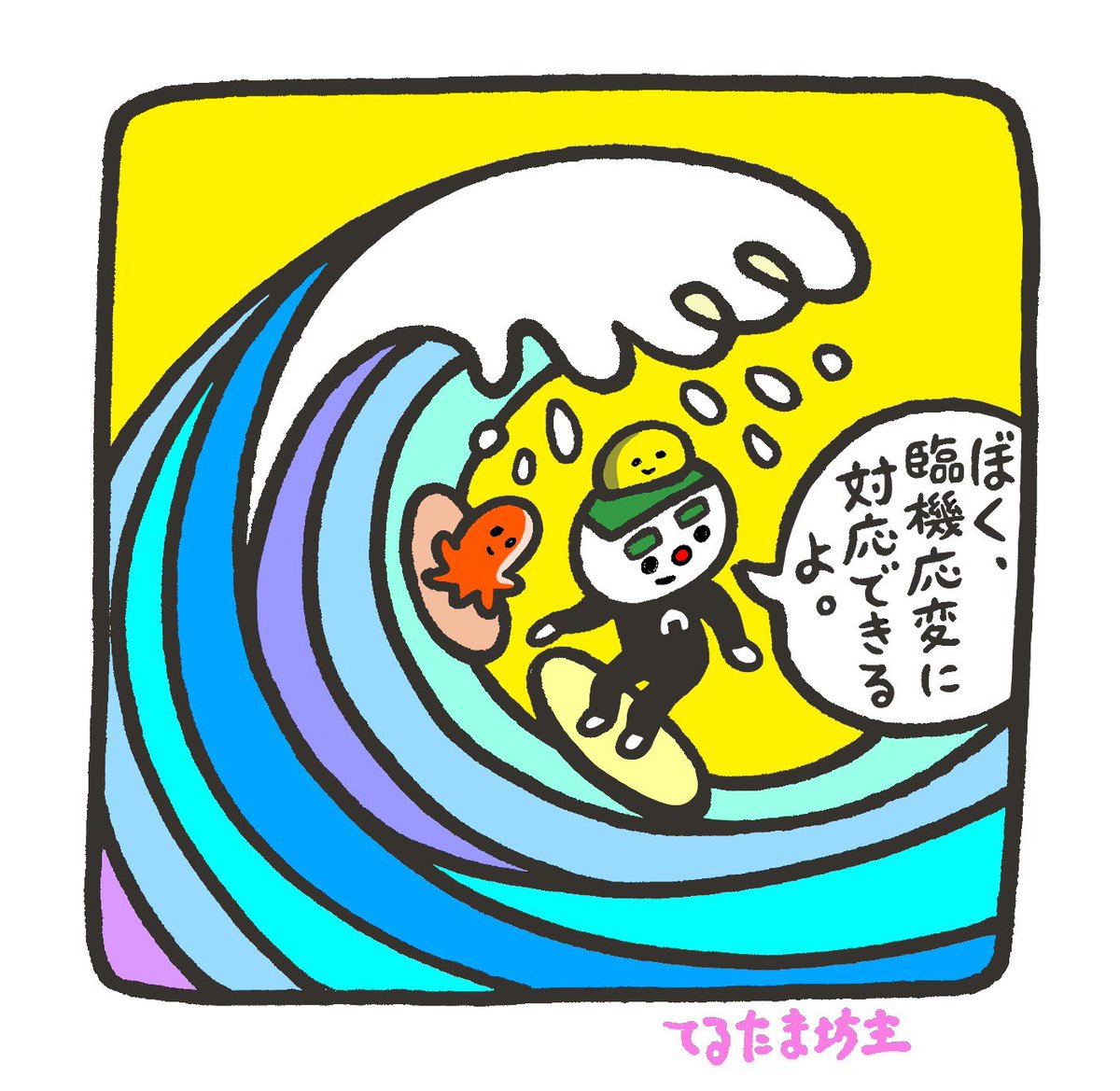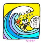 今日は「ソフトクリームの日」を予定していたのですが、新キャラクターのソフトクリームちゃんが駄々をこねて溶けてしまったので、急遽、おにぎりくんには海に行ってもらいました🍙✨ 今日は「波の日」 #絵 #おにぎりくん #みんなで楽しむTwitter展覧会