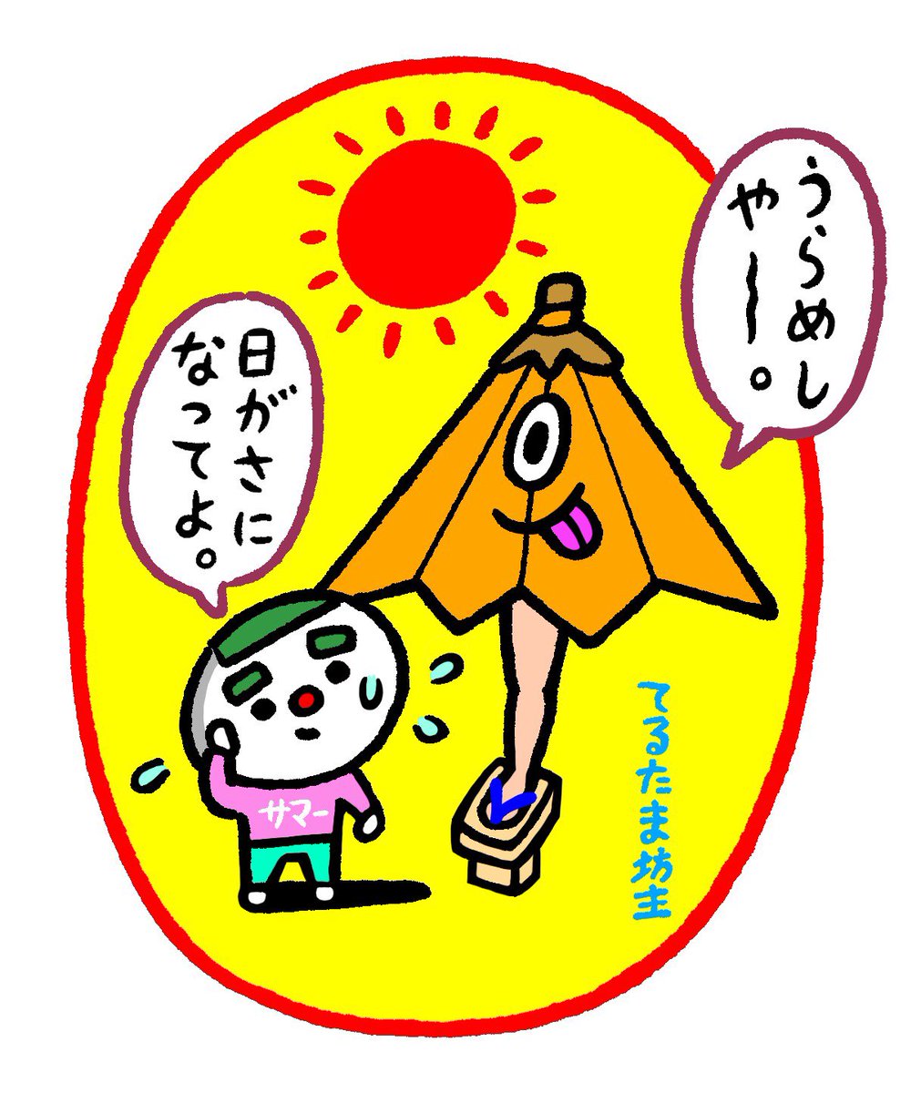 今日は「下駄の日」です。 子どものころ、よく落書きで、からかさ小僧を描いていました。それにしても毎日暑いですね〜🌞ギラギラ! #ゆるい絵 #おにぎりくん #みんなで楽しむTwitter展覧会