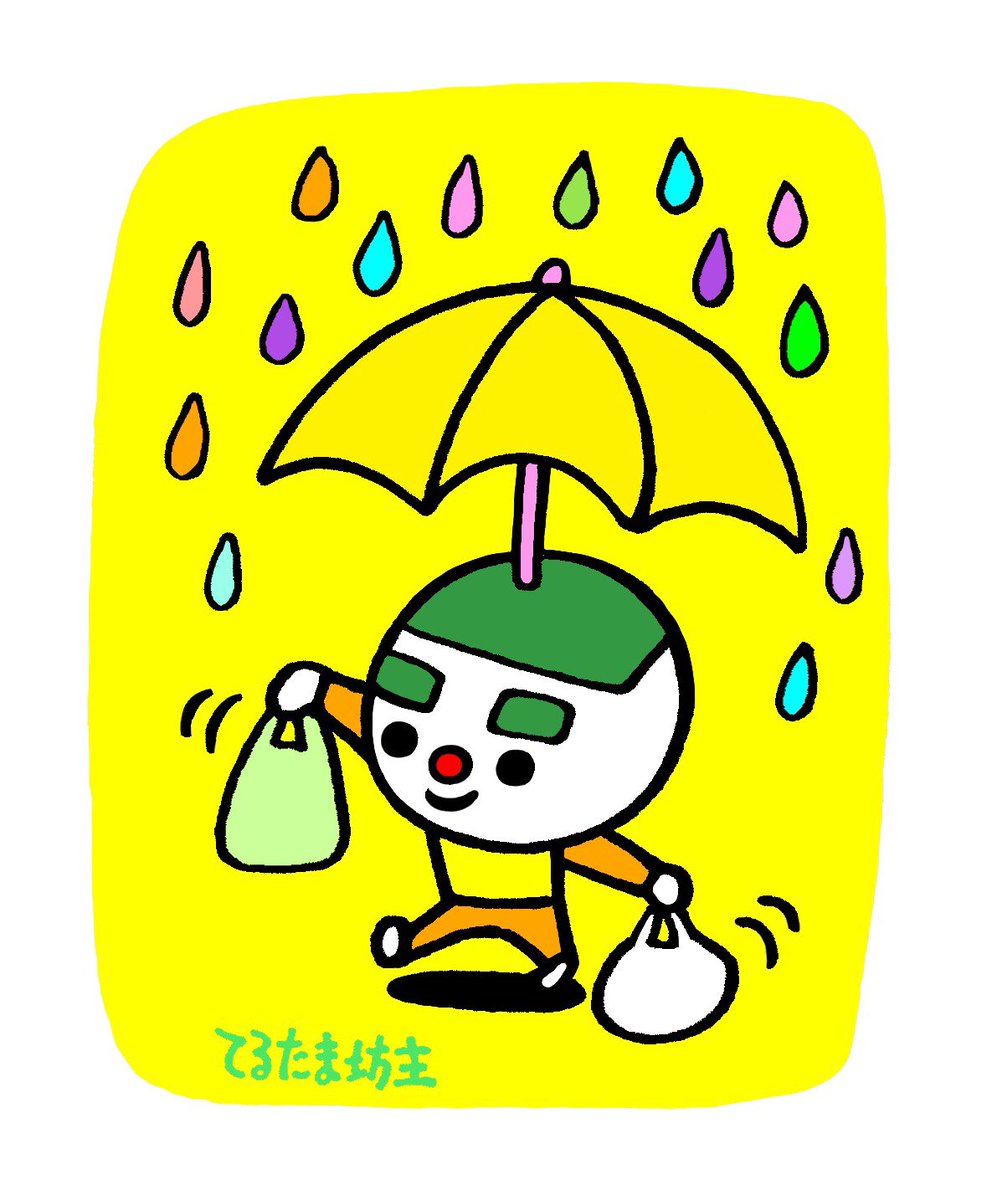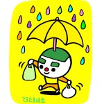 皆さま、梅雨の日曜日をいかがお過ごしですか。おにぎりくんは頭に傘がささるので、お買い物に出かけていきました🍙✨今日は「傘の日」 #ゆるい絵 #おにぎりくん #みんなで楽しむTwitter展覧会