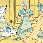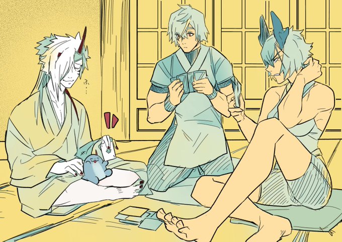 海に着いて早々、海の家で焼きそば作ってるシシマルさんとか遊んでるアケミウツミ姉妹がいたらいそうだなと思って落書き。 雑草丸「手伝うきね!」 #おにヨの世渡り twitter.com/merry_condor/s…