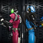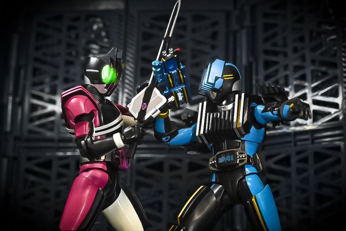 #夜のフィギュア撮影会 「ペア」 会ったと思えば殺りあって 次に会ったら背中合わせで戦って 皮肉り合いながらも付かず離れず 居続ける2人です。 #オモ写 #おのれディケイド #仮面ライダーディケイド #フィギュアーツ写真部