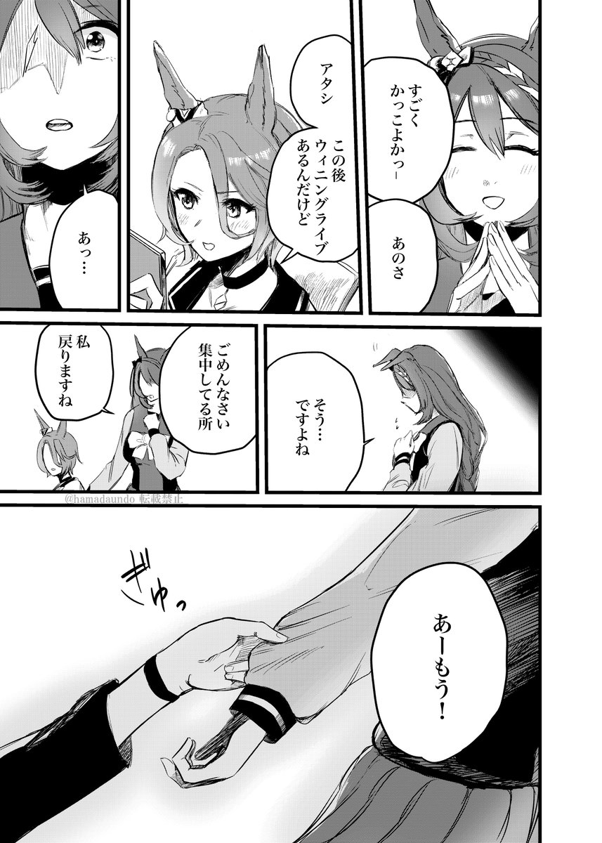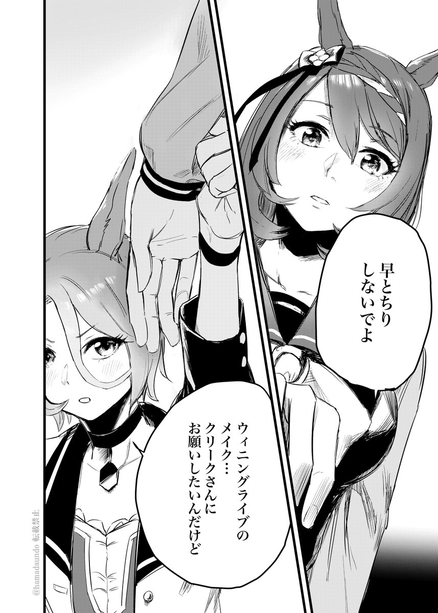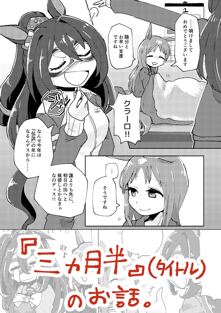 3/19(日)同室webオンリー #おはようおやすみまた明日 にて冬コミでお出ししたナリタタイシンとスーパークリークのお話「Side:Creek」を展示・頒布します!(36p) 本文見本①
