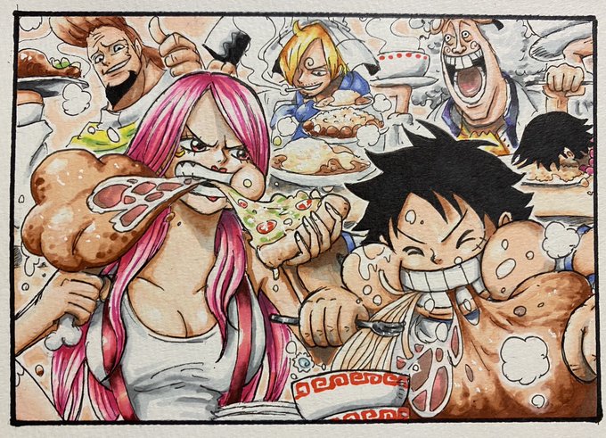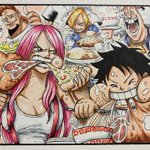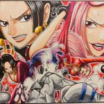 白ひげ・おでん・ロジャーの宴🍶 この3人のシーン、もっと見たいなぁ。エピソードオブおでんみたいのやらないかなぁ。ロジャーの方がいいのか…?なんにせよ、楽しい妄想を形にしたいい一枚が描けたかなと👍 #ONEPIECE #イラスト #おはようございます