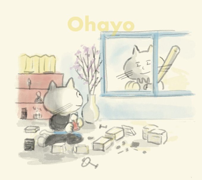 Ohayoございます すてきな一日になあれ #おはようねここ #みんなdeポジティブ人間化 #みんなで楽しむTwitter展覧会 #GutenMorgen #goodmoring #イラスト