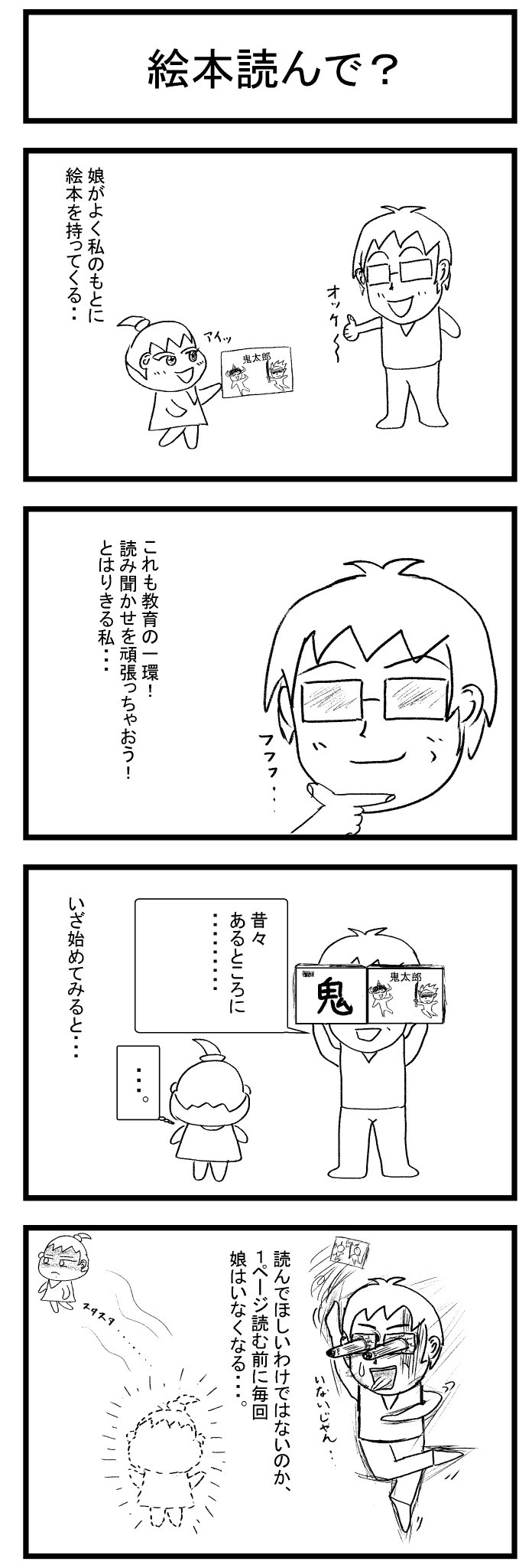 おはようございます😁 今回の話は「絵本読んで?」。 今回も見せてるだけなんか? 過去の漫画はブログに載ってます。 sengyodewanai-shufu.com #4コマ漫画 #育児漫画 #子育てあるある #漫画が読めるハッシュタグ #みんなで楽しむTwitter展覧会 #おは戦31122ng🌛