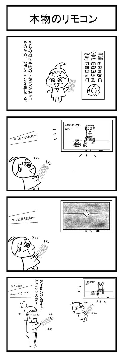 おはようございます。 今回の話は「本物のリモコン」。 娘はテレビが反応しないリモコンに興味なし・・ 過去の漫画はブログに載ってます。 sengyodewanai-shufu.com #4コマ漫画 #育児漫画 #子育てあるある #漫画が読めるハッシュタグ #みんなで楽しむTwitter展覧会 #おは戦31201ds🌊