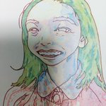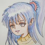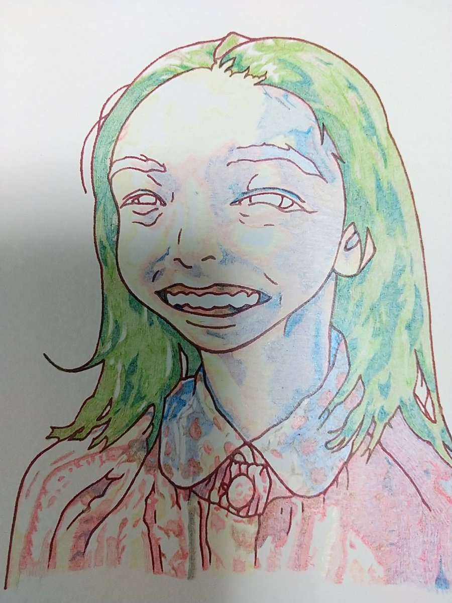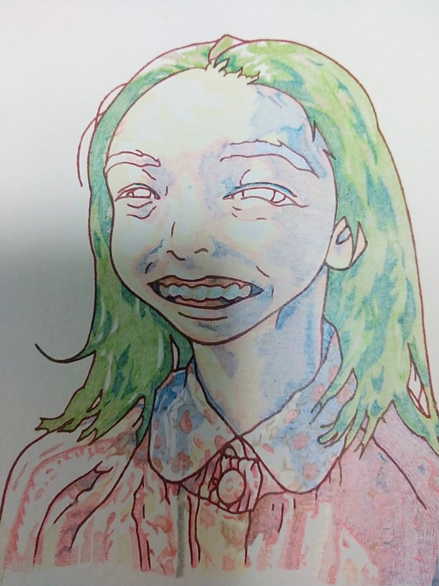 #火金お絵描き おはよう御座います🌞✨ 安子ちゃんの歯茎(笑)を、「Rose Red」「つちいろ」「Prussian Blue」の3色で塗り重ね💡 歯は「Light Blue」と「つちいろ」の2色で塗り重ね✌️ #おは戦40208fk🔥 #カムカムエヴリバディ #上白石萌音 #似顔絵 #色鉛筆画