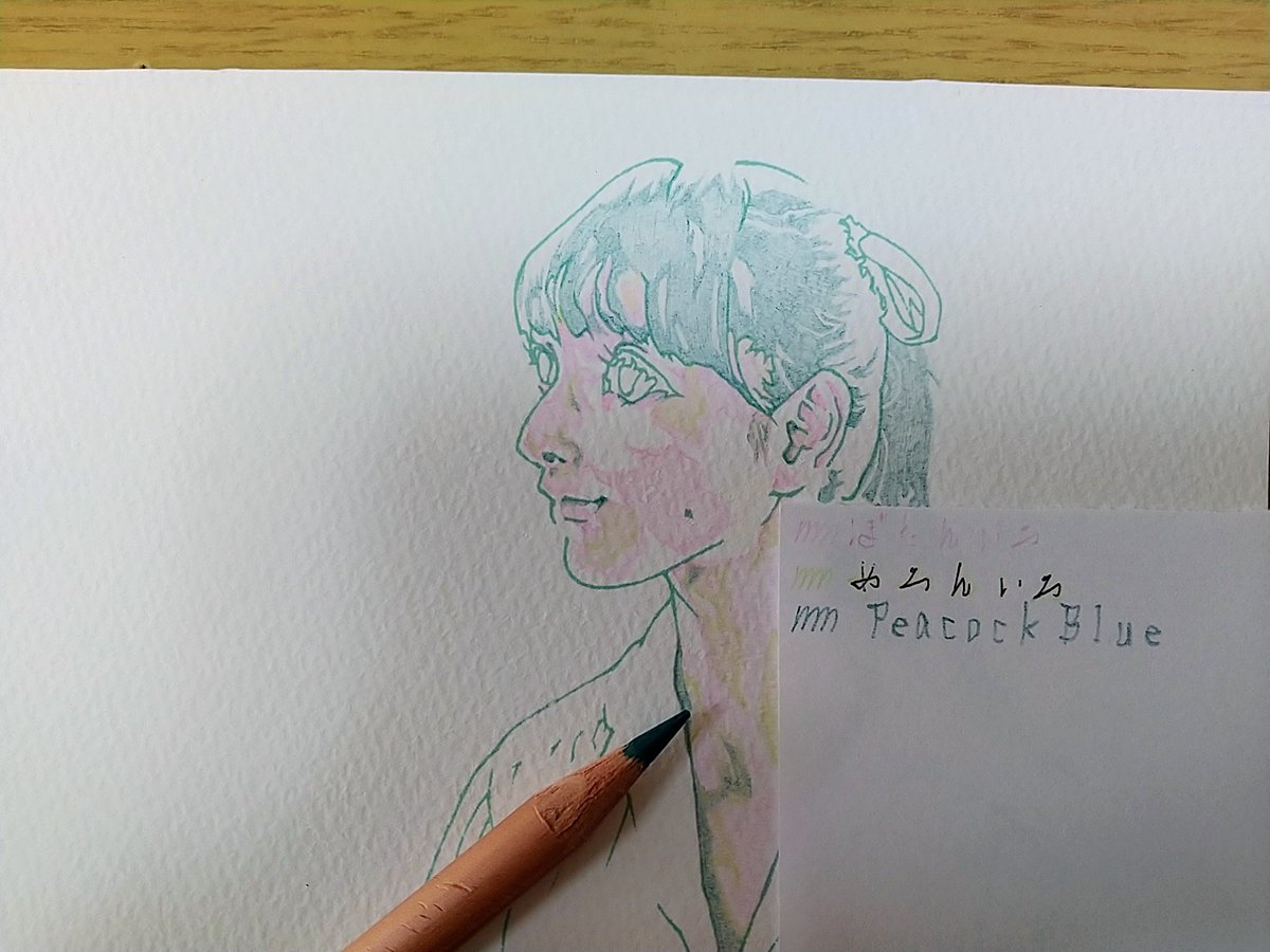 #火金お絵描き おはよう御座います🌞✨ 髪の毛とおなじ「Peacock Blue」をお肌の一番暗い陰に💡ガツンと立体感出ましたでしょうかッッ(*`Д´)ノ!! #おは戦40311mk🍺 #カムカムエヴリバディ #深津絵里 #似顔絵 #色鉛筆画