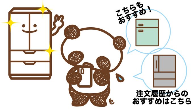 おはよう! ネットで冷蔵庫買ったよ。 これでりんごも竹も新鮮のまま! あれ?スマホが次におすすめしてくれたのは... 違う形の冷蔵庫! おすすめされても、こんなに冷蔵庫ばかり、いらないのになー。 #おは戦40609jm🌴 #パンダ #イラスト