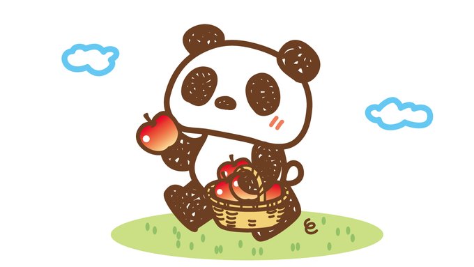 おはよう! お使い頼まれたの。 カゴいっぱいの美味しそうなリンゴ! ...... 1個くらい食べてもいい?だめ? うん。一緒に食べた方がおいしいね! #おは戦40626jn🍨 #イラスト #パンダ