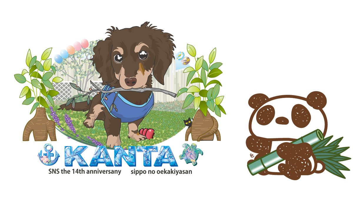 おはよう! カンタくんはカニンヘンダックスフンドの男の子。 枝を加えて走り回るのが大好きなヤンチャ坊主。 黒猫のジジがそっと見守ってるよ。 #おは戦40711jg🌛 #イラスト #カニンヘンダックスフンド