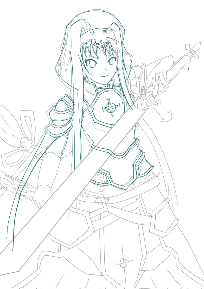 おはようございます👨💻 ソードアート・オンライン アリス下書き途中💦 バランス調整に時間取られて昨日はあんまり進まなかった💦 今日帰って頑張ろ└( 'ω')┘ #イラスト #絵描きさんフォロバ100 #ソードアート・オンライン #アリス #おは戦40914ss 🌊