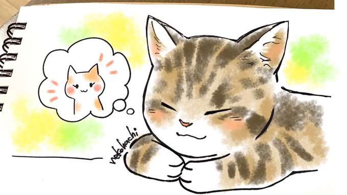 おはようございます🌸 朝楽しいことを考えると、気分良く1日を始められる気がします☺️♪ 幸せそうな猫ちゃん描いて私もほっこり🍀 今日も素敵な一日をーー🐈🐾 #猫の絵 #イラスト #猫好きさんと繋がりたい #おは戦41002on 🍨