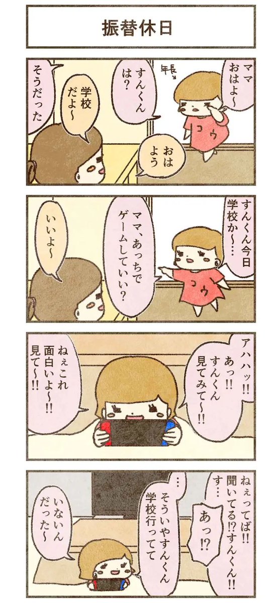 おはようございます。 先週の土曜日はコウ(娘)の運動会だったので、月曜日は振替休日でした😌 今日も良い日になりますように🌱 #育児漫画 #4コマ #コミックエッセイ #子育て #育児絵日記 #漫画が読めるハッシュタグ #Twitter交流会会場 #おは戦41019os🌊