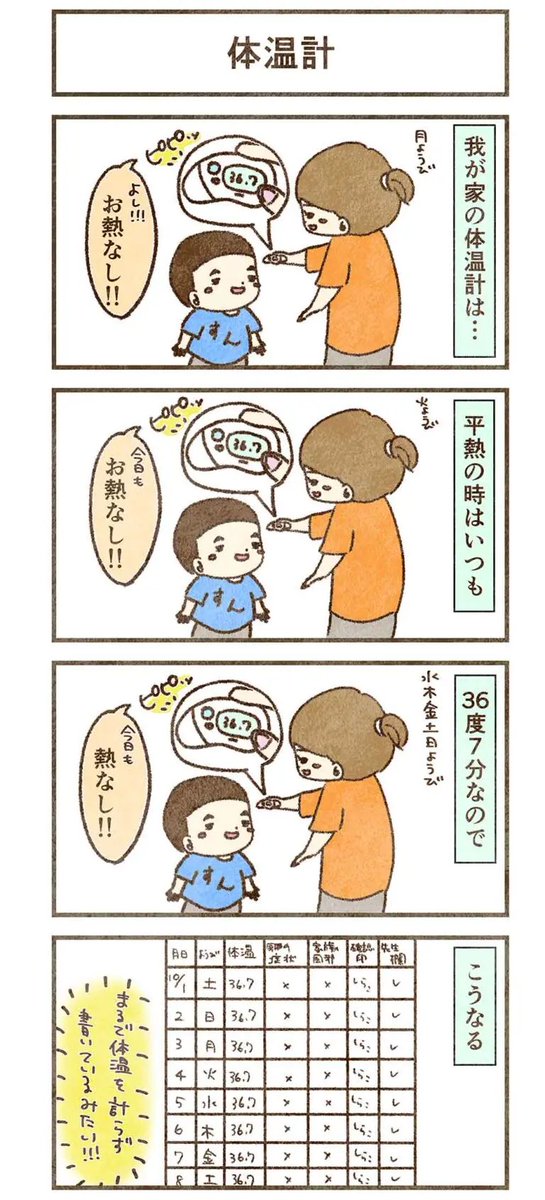 おはよう😌 今朝も36.7℃だったよ。 今朝はちょっと暖かいね。 今日も良い日になりますように🌱 #育児漫画 #育児絵日記 #子育て #コミックエッセイ #4コマ #日常漫画 #Twitter交流会会場 #漫画が読めるハッシュタグ #おは戦41030on 🍨 #みんなで楽しむTwitter展覧会