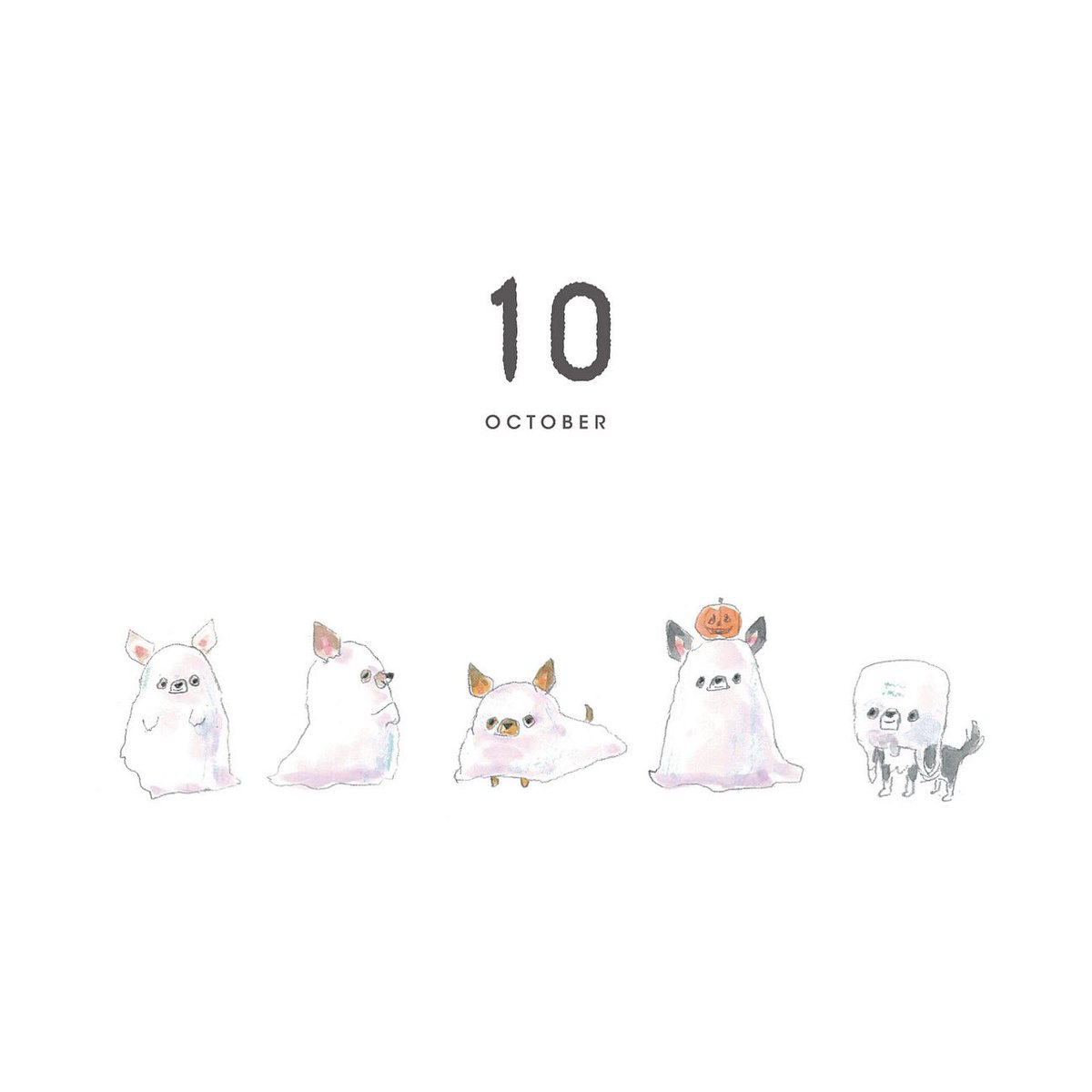 おばけなんて ないさ おばけなんて うそさ ねぼけたひとが みまちがえたのさ de 10月スタートw( ˊ̱˂˃ˋ̱ ) #イラスト #デザイン #カレンダー #チワワ #チワワのメイちゃん #たかねのイラストデザイン #10月 #チワワナカレンダー #ハロウィン #おばけなんてないさ
