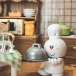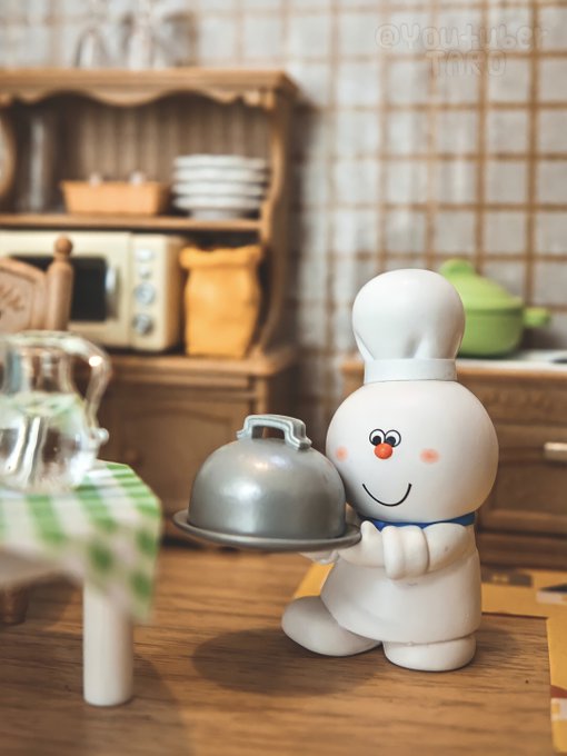 #夜のフィギュア撮影会 11/2 お題 『食』 👻「おまたせ~♪」 (既出) #オモ写 #toyphotography #おばけのアッチ #capsuletoys #kenelephant #cooking #料理