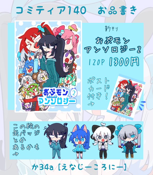 5/5のコミティア140お品書きです🙌 豪華ゲストのおぷモンアンソロがとにかく最高なので是非お越しください〜🙏✨ 既刊グッズも少しあります👌 ゲストの方のイラストサンプルや紹介は下に繋げてあるのでご覧下さい!!! おぷモンをよろしく!!!! #おぷモンアンソロ #COMITIA140 #コミティア140