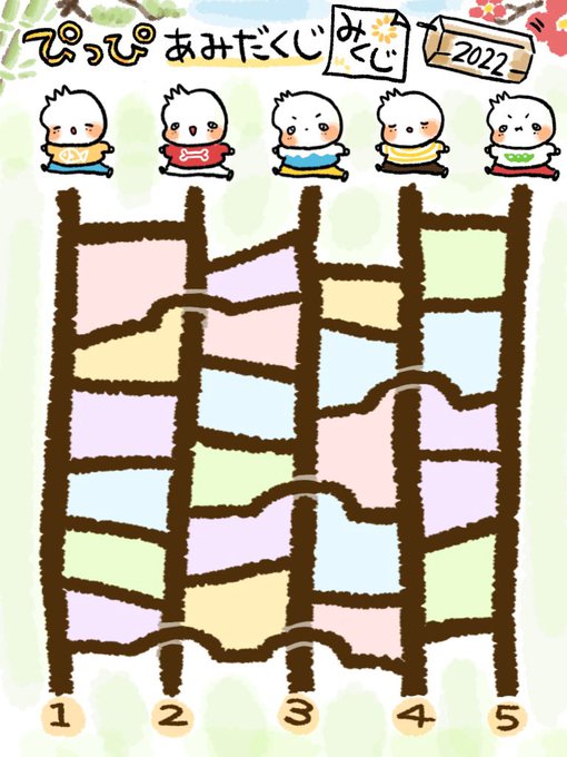 ★ ぴっぴ あみたくじ【みくじ】🎍🌅 直感で上の ぴっぴ を選んで、道を進んでいこう!! 出た数字で、コメント欄でなにが出たか見てみよう! #ぴっぴたち #イラスト #おみくじチャレンジ