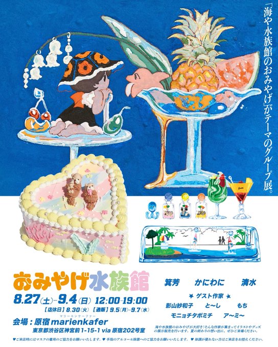 ⛵️ #おみやげ水族館 🌊 「海や水族館のおみやげ」がテーマのグループ展にゲスト参加させていただきます!!🥳💙 🐠会期︎🐠 8/27(土)-9/4(日)12:00-19:00 🐳会場🐳 原宿 @__marienkafer__ 🏝通販9/5(月)〜7(水)🏝 marienkafer.cart.fc2.com よろしくお願いいたします❣️🐬