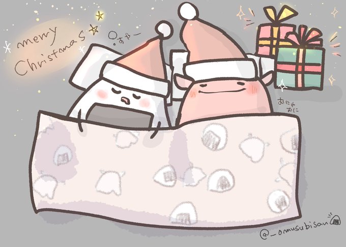 Merry Christmas!🎄.*✨🎁 今夜は優しい気持ちがたくさん溢れる あったかい夜になっているといいな🌟 #イラスト #創作 #おむすび日記 #ゆるいイラスト #絵柄が好みって人がいたらいいなぁ #おにぎり #めんだこ #MerryChristmas 🍙🐙