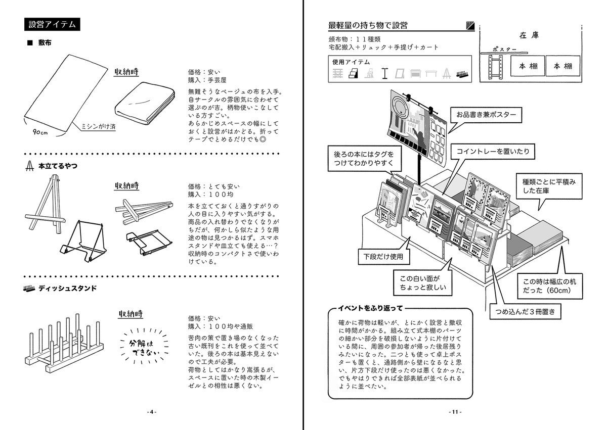 【新刊サンプル】 11/6(日) #おもしろ同人誌バザール にて発行する「サークルスペースの持ち物」です。 設営アイテムやスペース、荷造りのイラスト図説本。持ち物チェックリスト付き。 A5/20ページ/500円 スペース『し-57』道草パレット 年内にPDF版実装予定。 michipale.booth.pm/items/4295510
