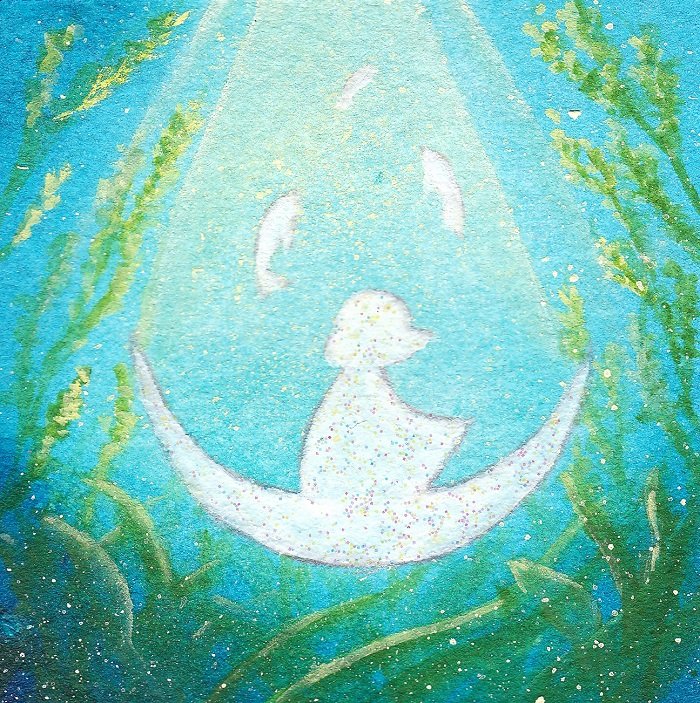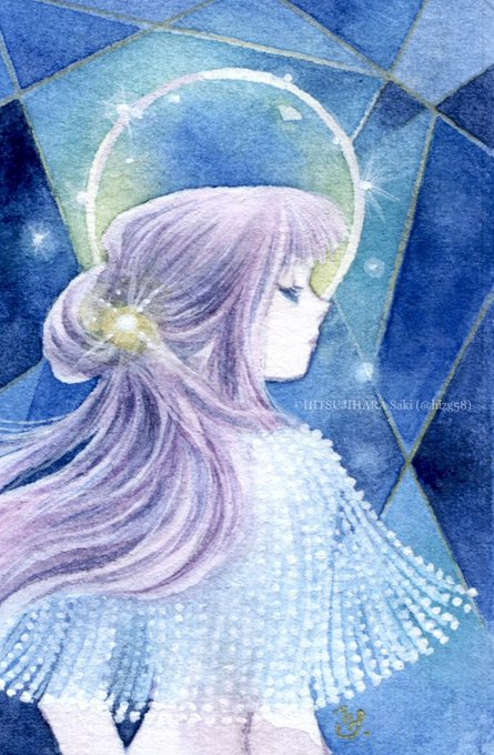 【夜明け-sea-】 #おわりの星 出展作品・ミニ原画① instagram.com/p/Chwuaf6rNf7/… pixiv.net/artworks/10126… #アナログイラスト #アクリル画 #ミニ原画
