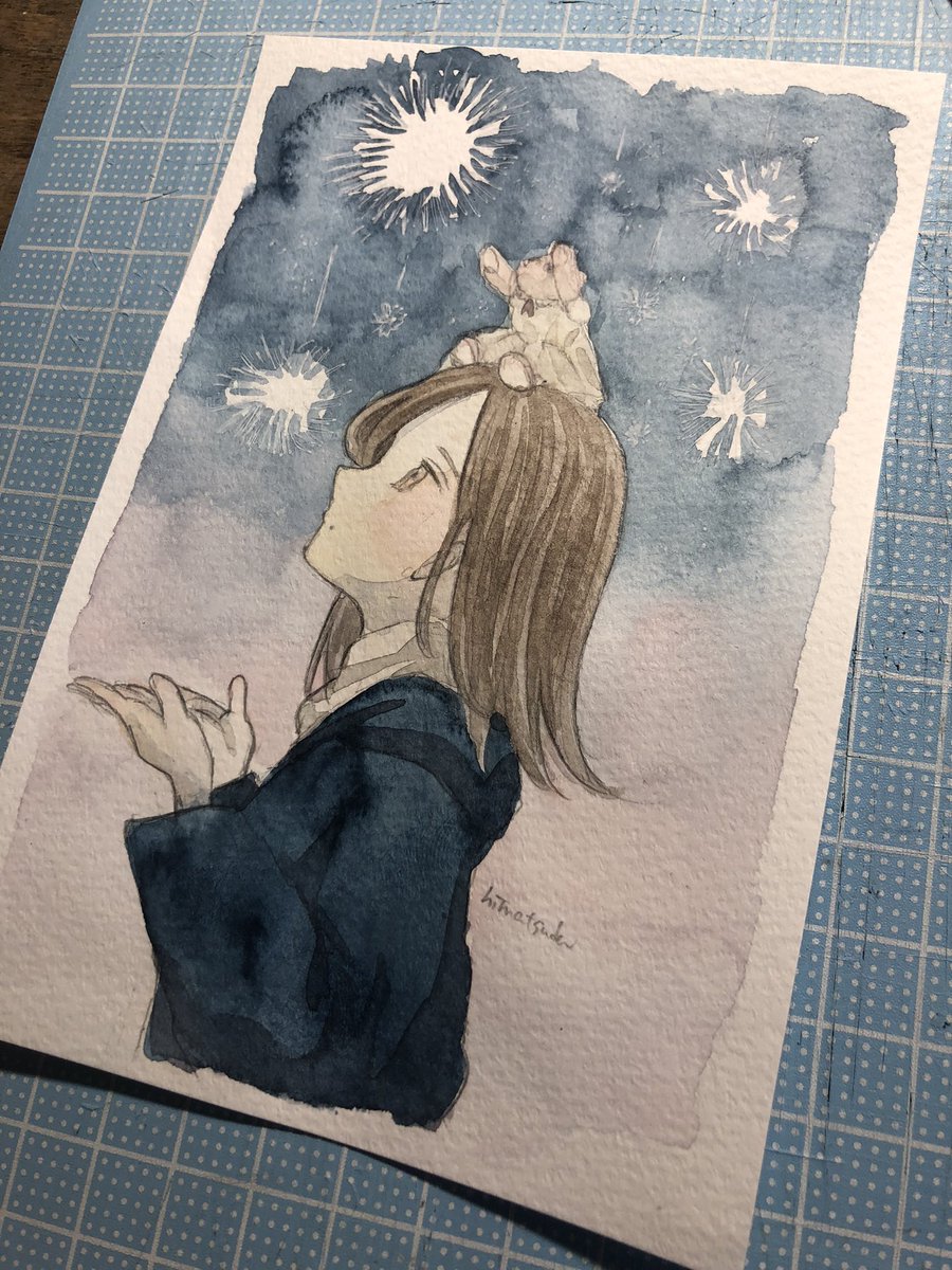 【想い、焦がれる】 #おわりの星 出展作品③ instagram.com/p/ChpAAk4hnCB/… pixiv.net/artworks/10070… #アナログイラスト #アクリル画